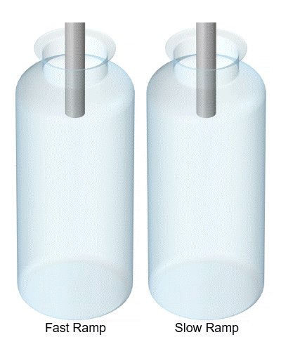 The computational fluid dynamics (CFD) experts at Veryst developed advanced multiphase flow models to simulate the dynamic filling of a pharmaceutical vial and capture the interplay between interfacial dynamics and nozzle movement. In the simulation, water is introduced through a moving nozzle into a vial initially filled with air. The flow rate is ramped up, held constant, and then ramped down.